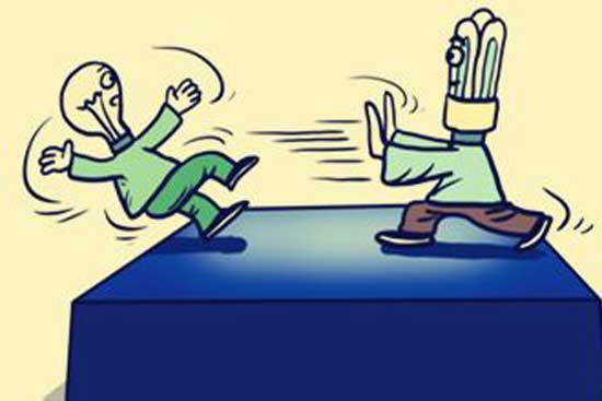 当今社会,“迟钝”就会“迟缓”,落后就要挨打。过去是“大鱼吃小鱼”,如今是“快鱼吃慢鱼”。入世后,一个人如果“思维”不“敏捷”,“反映”不“快速”,墨守成规,四平八稳,迟早会被淘汰。